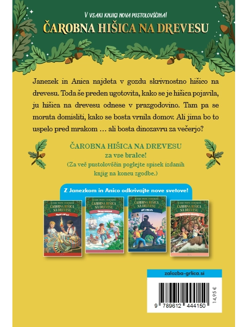 Ko je Janezek pregledoval knjigo o dinozavrih, si jih je zaželel videti žive v njihovem okolju. V trenutku, ko je izrekel to željo, je čarobno hišico zajel močen vrtinec in jo skupaj z otrokoma odnesel v obdobje dinozavrov.